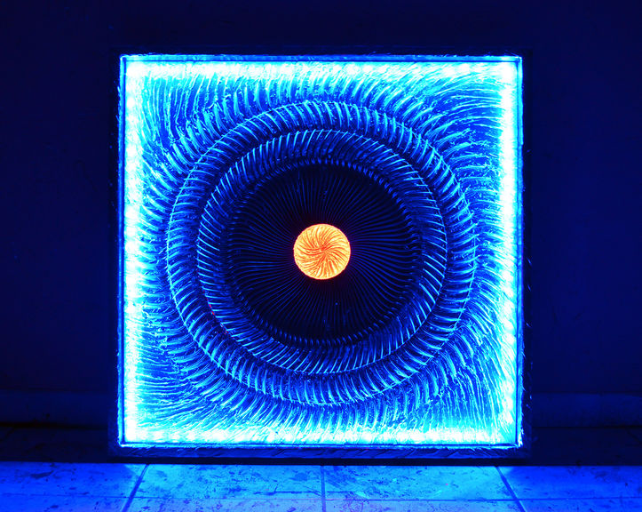 Die Arbeiten von Matthias Kretschmer wirken ungewöhnlich, und dennoch vertraut. Auf den ersten Blick zeigt seiner Werke zeigt eine Anzahl konzentrischer Kreise, reduziert auf ein Minimum an Farben, dominiert durch Metallfarben, Glanz, aber auch Rost und Kupferoxid. Auf den zweiten Blick offenbaren sich die ersten Botschaften und Metaphern, die Kreise setzen sich zusammen aus einer Vielzahl einzelner Elemente. Es sind alltägliche, rein funktionale Gebrauchsgegenstände, die den Weg aus dem ursprünglichen Umfeld auf die Leinwand gefunden haben.